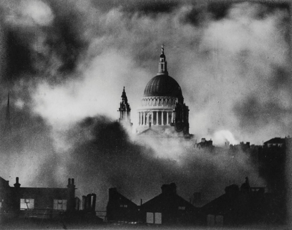 Famous photo, “St Paul’s Survives”, taken 30 December 1940 by photographer Herbert Mason during the 114th night of German air raids, i.e. the Blitz. Next time you’re by that way, take a look around. Nearly all the building in the vicinity are post-war, testimony to how many had been bombed out of existence. Volunteers risked their lives to save St Paul’s.